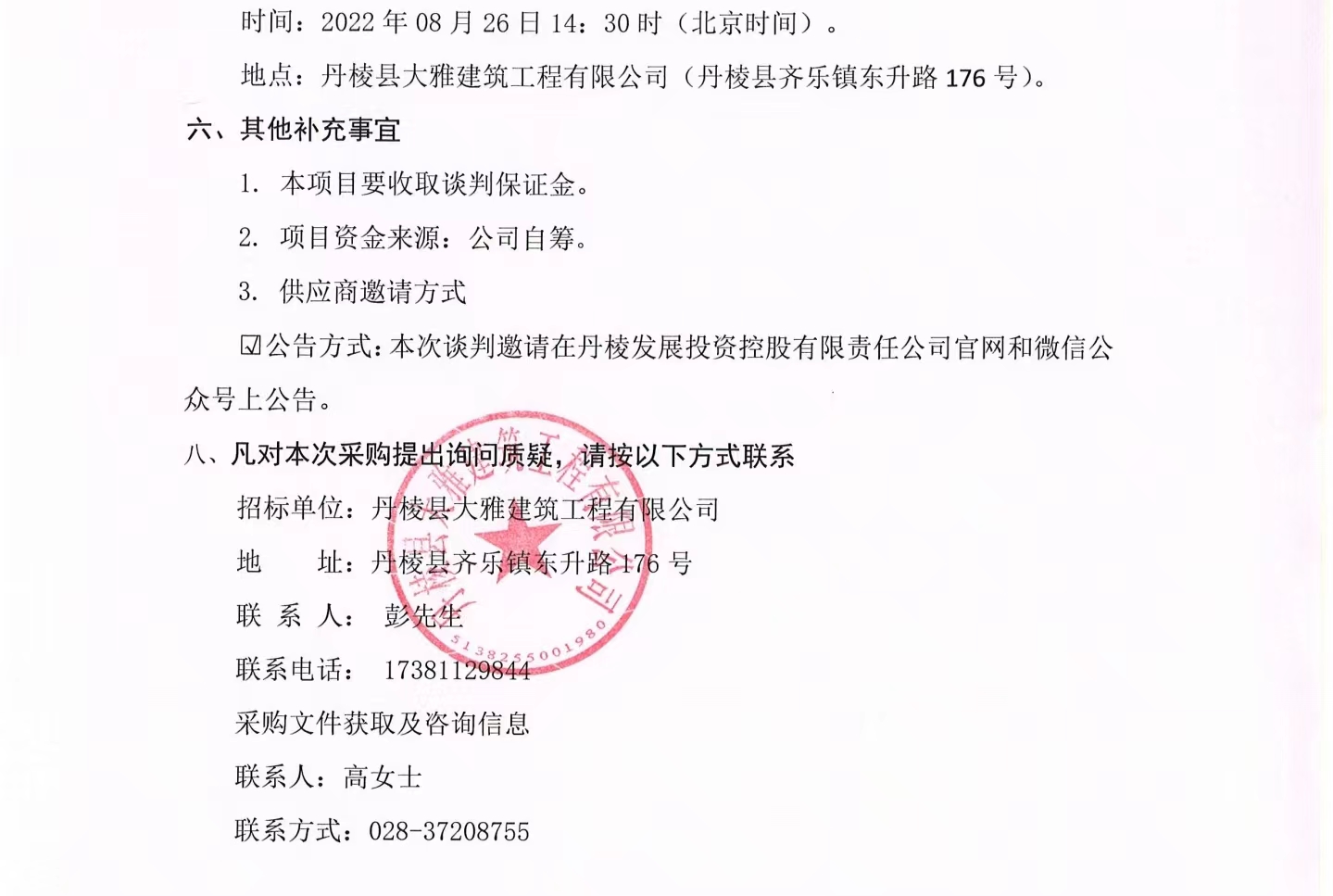 丹棱縣熊河碥片區(qū)市政基礎(chǔ)設(shè)施建設(shè)項(xiàng)目一期(城市雙修)設(shè)計(jì)施工總承包(EPC)衛(wèi)生間幕墻專業(yè)分包項(xiàng)目談判邀請(qǐng)公告