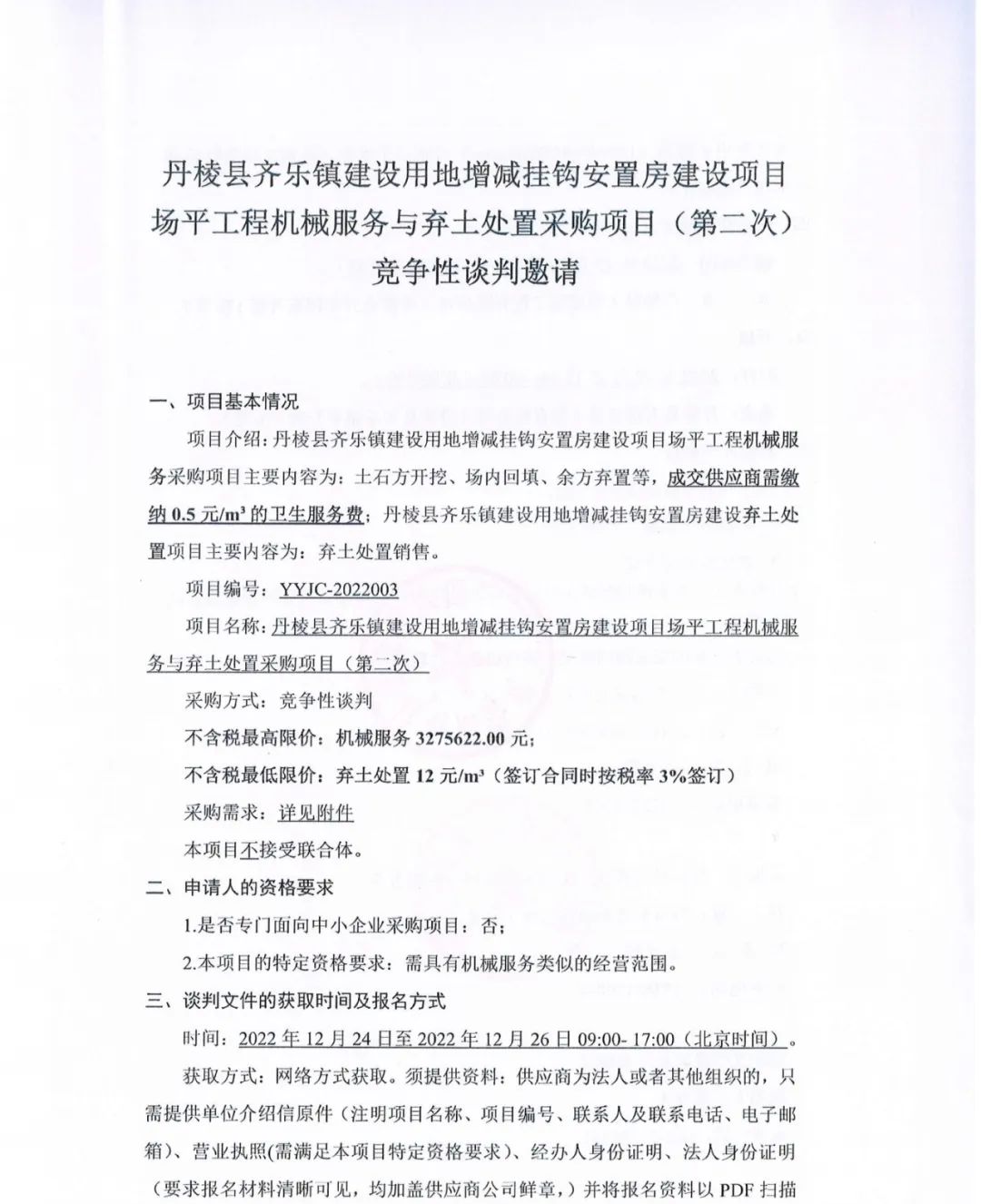 丹棱縣齊樂鎮(zhèn)建設(shè)用地增減掛鉤安置房建設(shè)項目場平工程機(jī)械服務(wù)與棄土處置采購項目(第二次)競爭性談判邀請