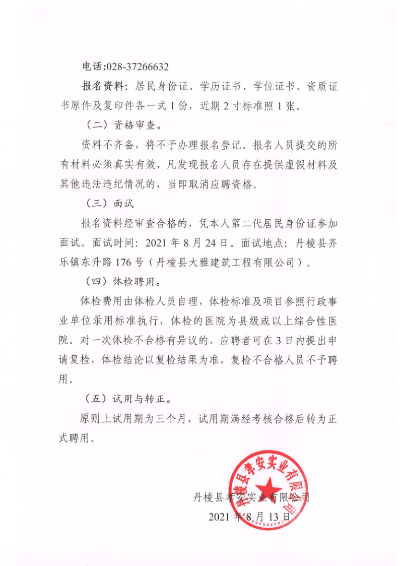 【縣孝安公司】丹棱縣孝安實業(yè)有限公司關(guān)于公開招聘公司業(yè)務(wù)人員的公告