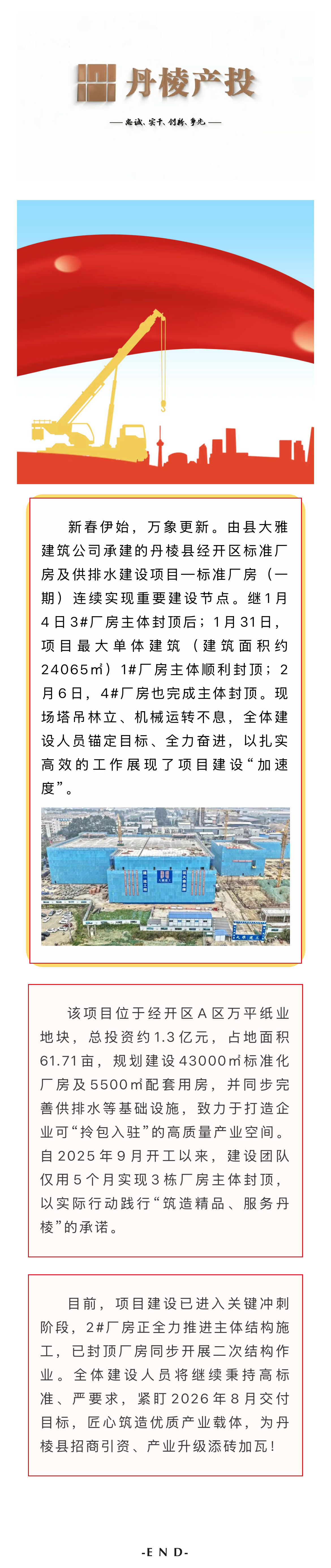 【縣大雅建筑公司】筑跡:丹棱縣經(jīng)開區(qū)標(biāo)準(zhǔn)廠房及供排水建設(shè)項目—標(biāo)準(zhǔn)廠房(一期)捷報頻傳,多棟廠房相繼封頂