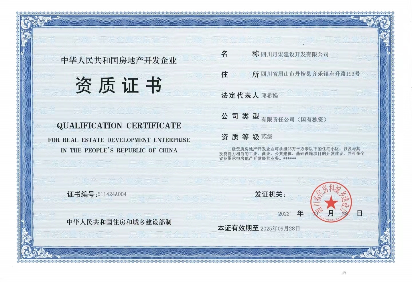 近日,丹發(fā)展集團下屬的四川丹宏建設開發(fā)有限公司順利通過了四川省住房和城鄉(xiāng)建設廳資格審核,成功獲取了房地產開發(fā)二級資質。標志著丹宏公司可承擔建筑面積25萬平方米以下項目的開發(fā)建設,并可在全省范圍承擔房地產開發(fā)經營業(yè)務,為進一步擴大建設規(guī)模及開發(fā)區(qū)域奠定了堅實基礎。