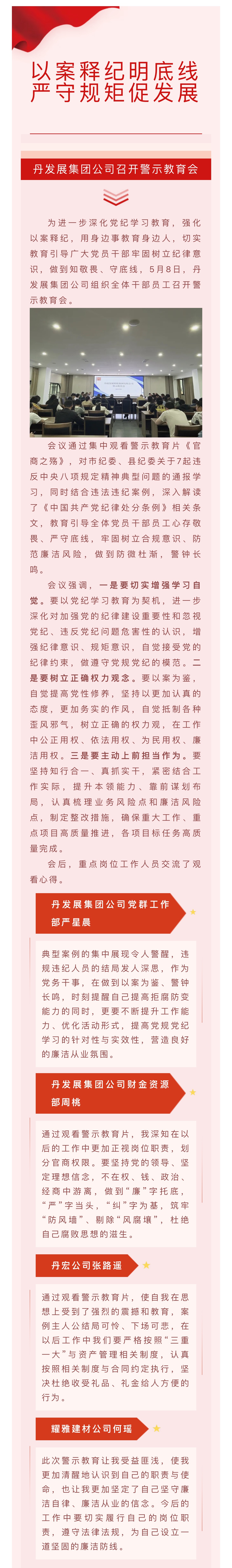 以案釋紀(jì)明底線(xiàn),嚴(yán)守規(guī)矩促發(fā)展丨丹發(fā)展集團(tuán)公司召開(kāi)警示教育會(huì)
