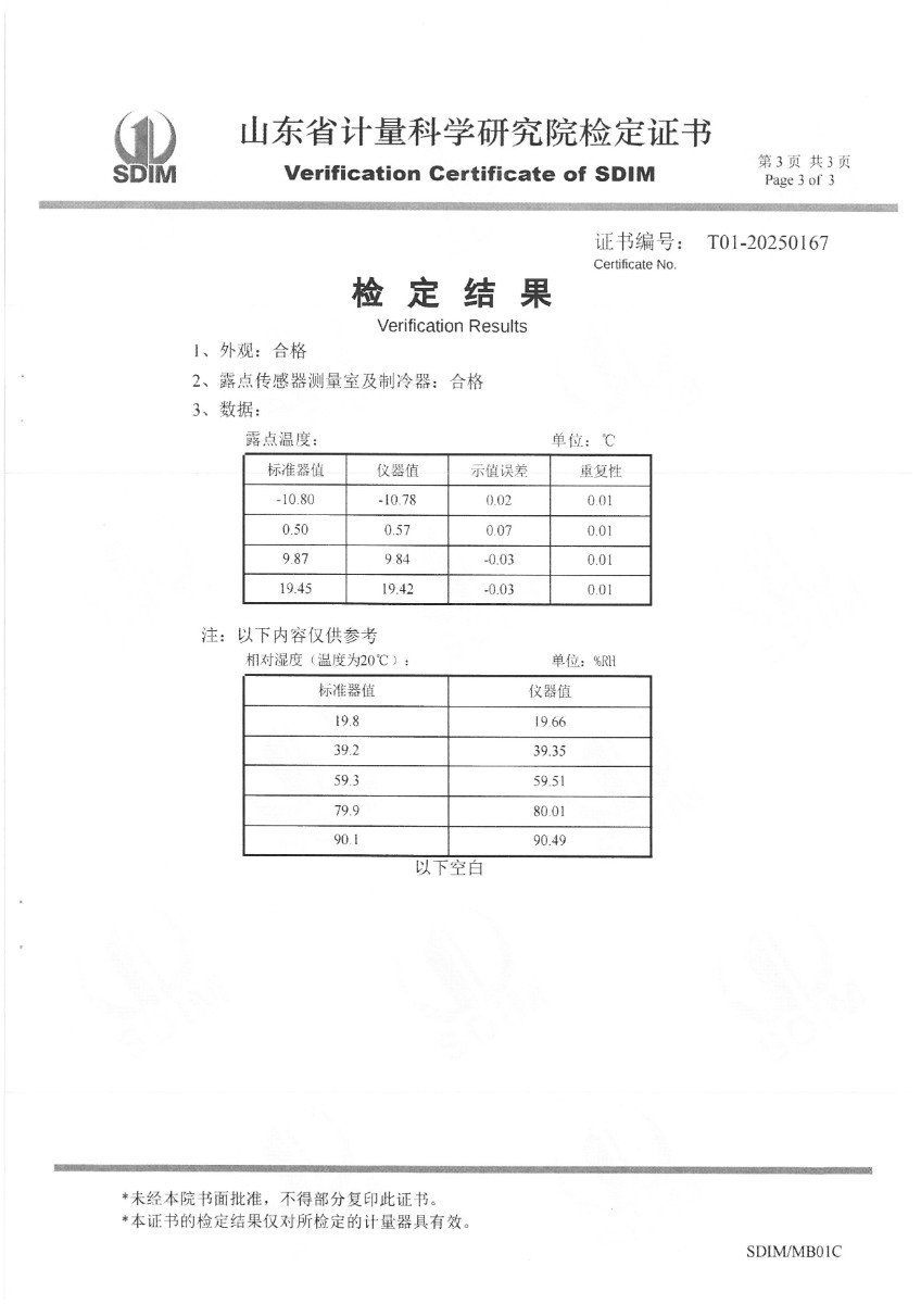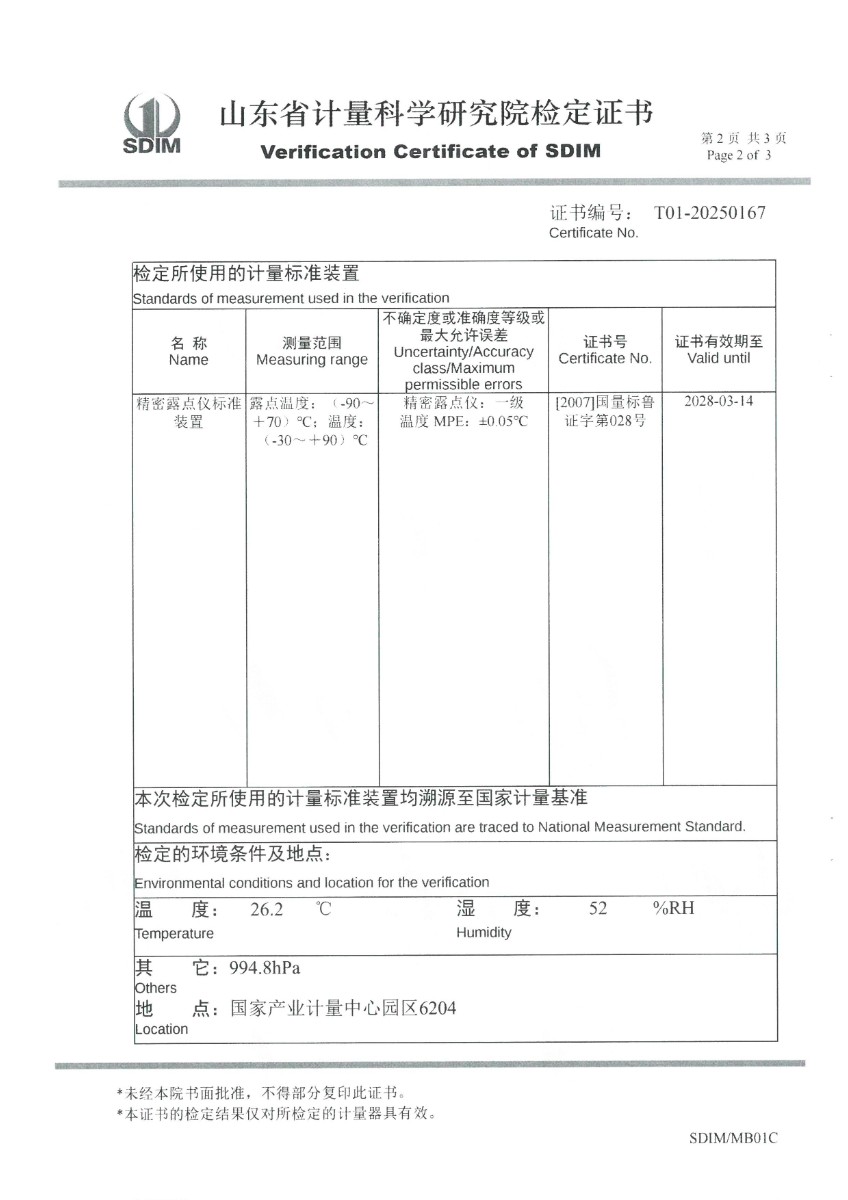 冷鏡式露點(diǎn)儀檢定、校準(zhǔn)證書(shū)