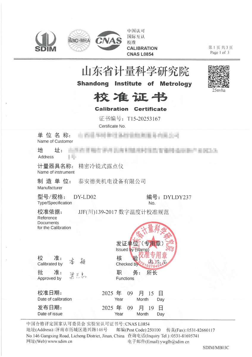 冷鏡式露點(diǎn)儀檢定、校準(zhǔn)證書(shū) 2025-9-23 本文被閱讀 1186 次