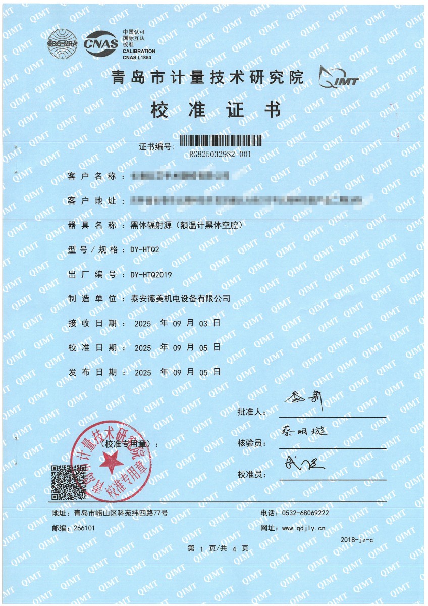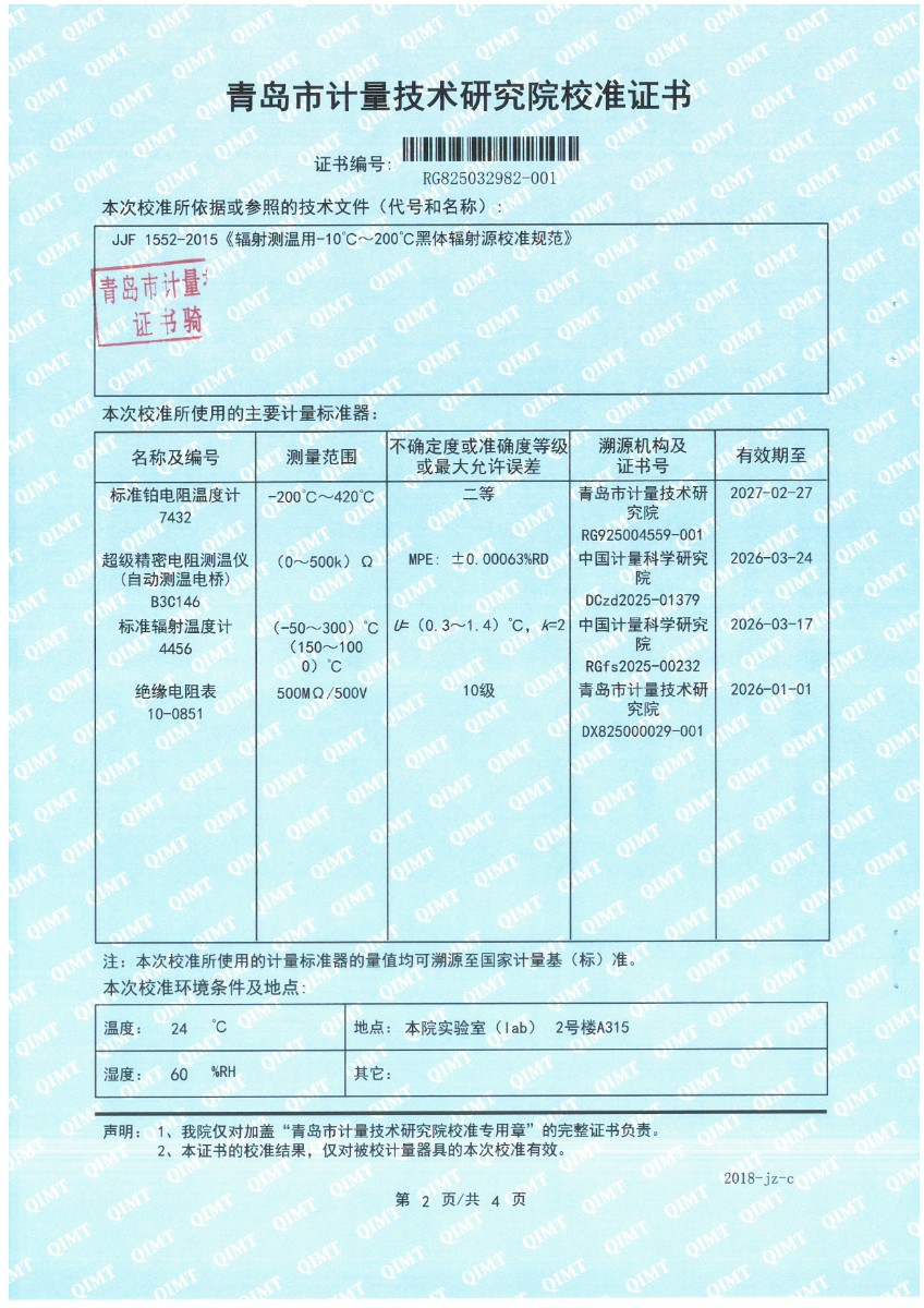 額溫計黑體空腔-校準證書 2025-9-23 本文被閱讀 1585 次