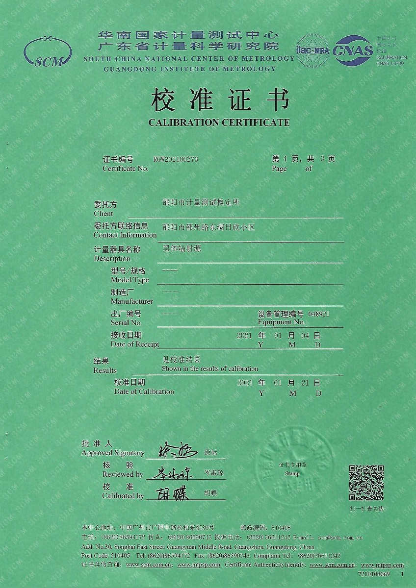 | 上一條:長(zhǎng)沙彼樂(lè)機(jī)電設(shè)備有限公司-體黑體爐恒溫槽部分 | 下一條:冷鏡式露點(diǎn)儀校準(zhǔn)證書(shū) |