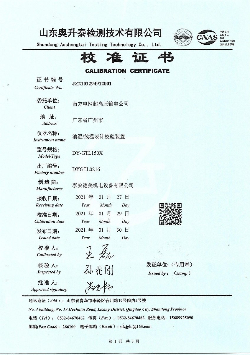 | 上一條:長(zhǎng)沙彼樂(lè)機(jī)電設(shè)備有限公司-體溫黑體爐額溫部分 | 下一條:冷鏡式露點(diǎn)儀校準(zhǔn)證書(shū) |