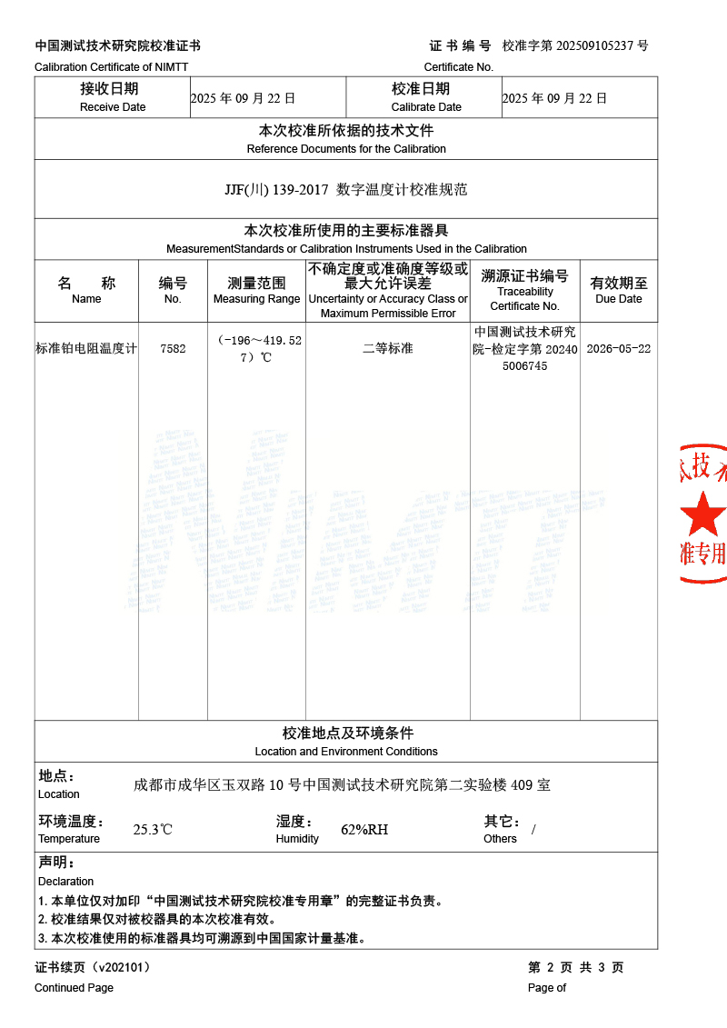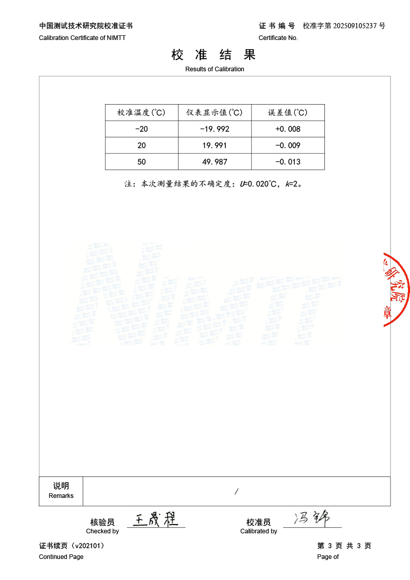 高精度數(shù)字溫度計(-20-100℃)校準證書 2025-9-27 本文被閱讀 1143 次