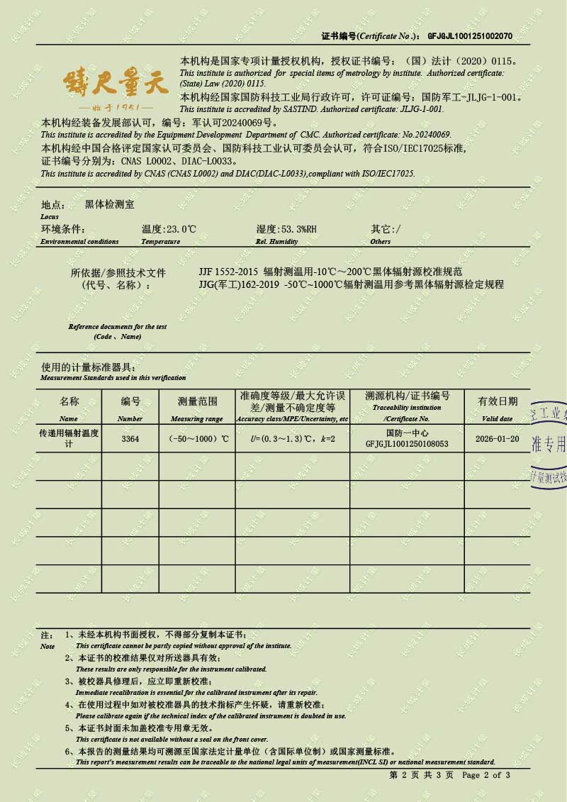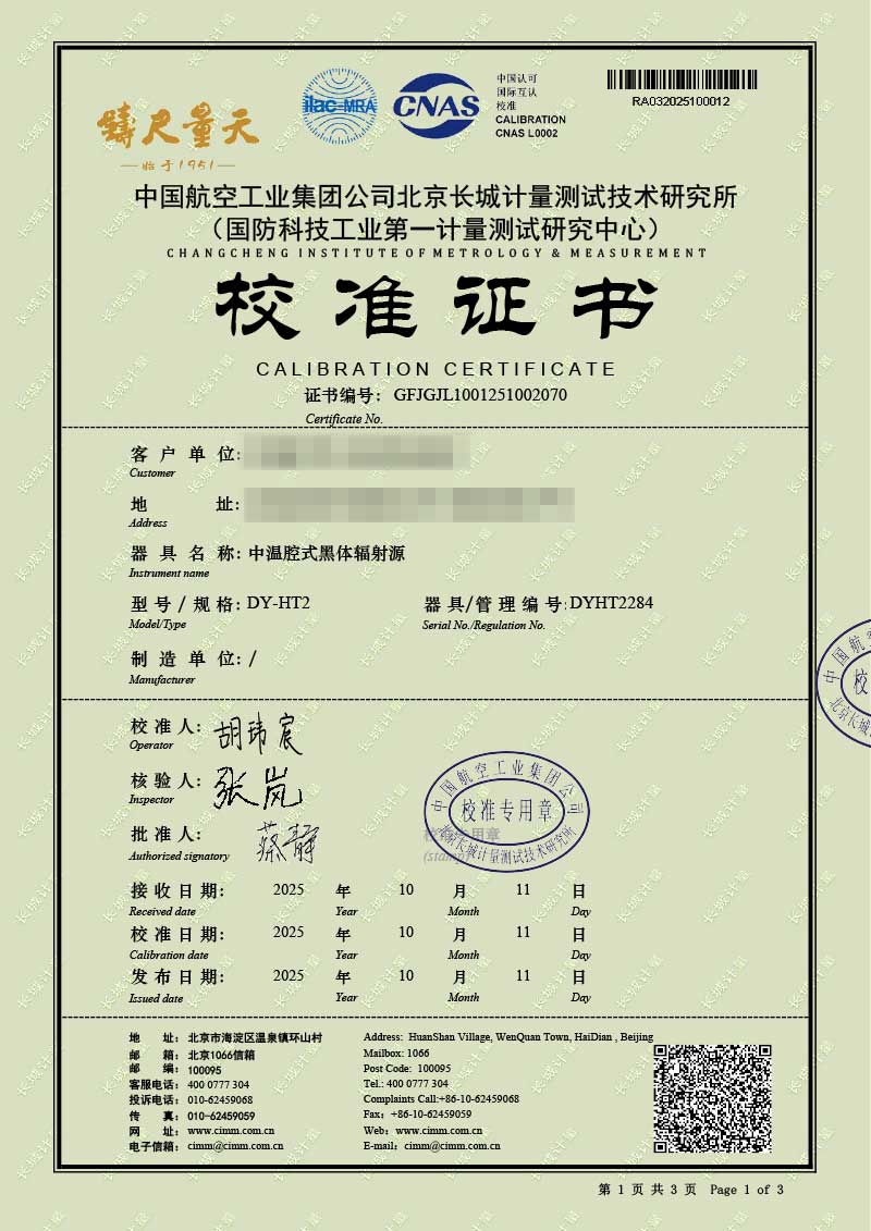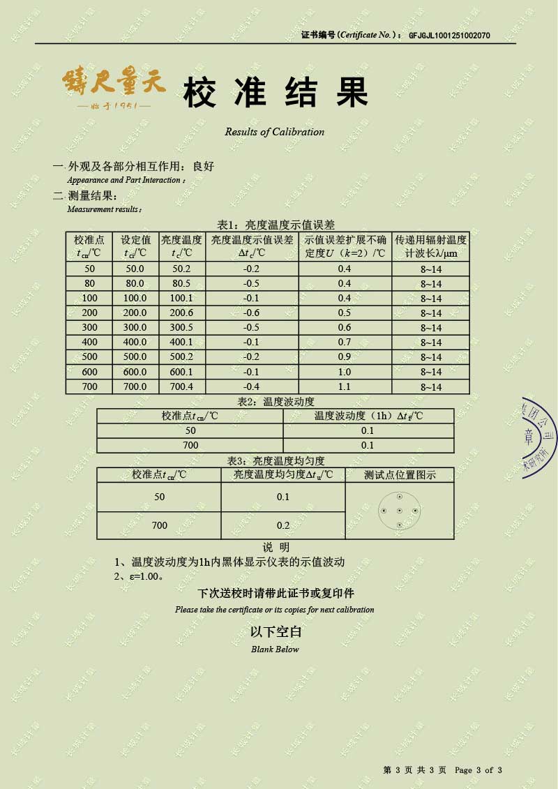 中溫腔式黑體輻射源(50-700℃)校準(zhǔn)證書 2025-10-30 本文被閱讀 359 次