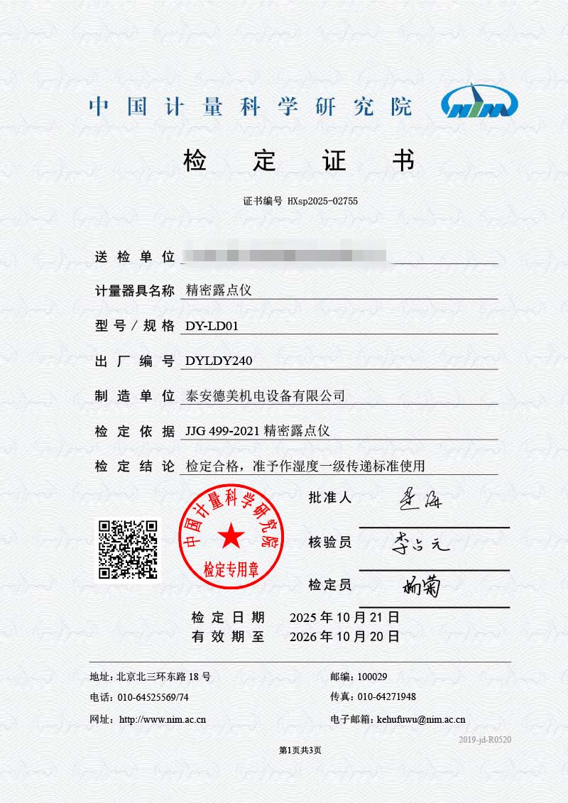露點(diǎn)儀檢定證書 2025-10-30 本文被閱讀 415 次