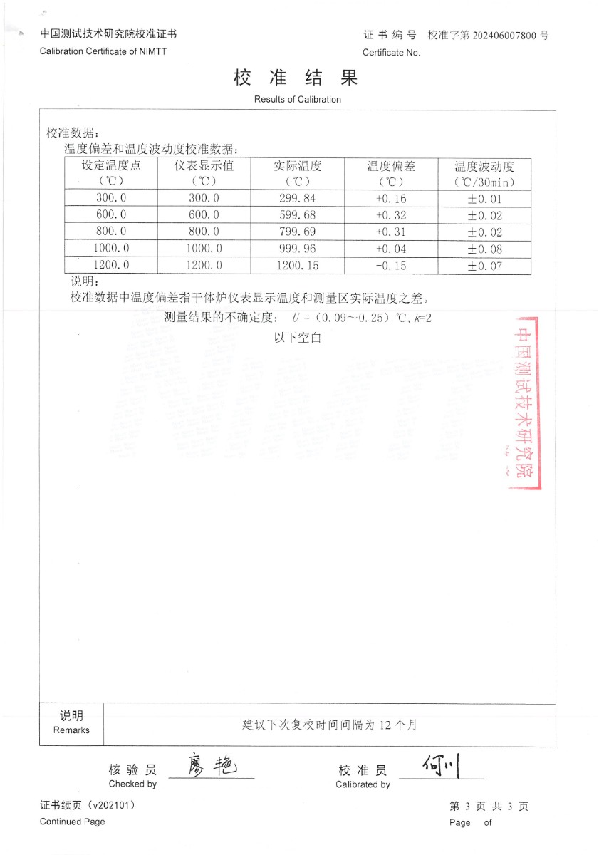 | 上一條:低溫干體爐(-30~150℃)校準(zhǔn)證書 | 下一條:冷鏡式露點(diǎn)儀校準(zhǔn)證書 |