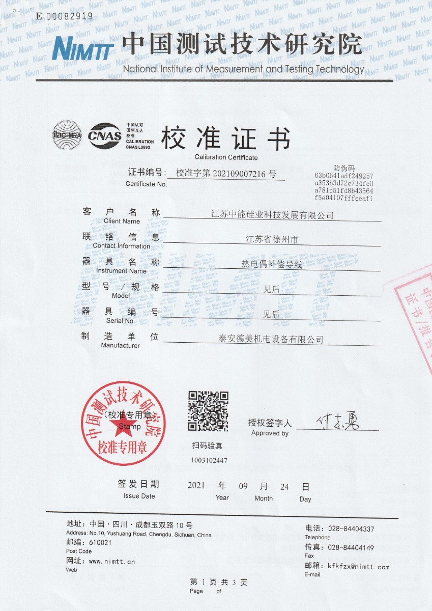 江蘇中能硅業(yè)科技發(fā)展有限公司-熱電偶補償導線 2021-9-29 本文被閱讀 14340 次